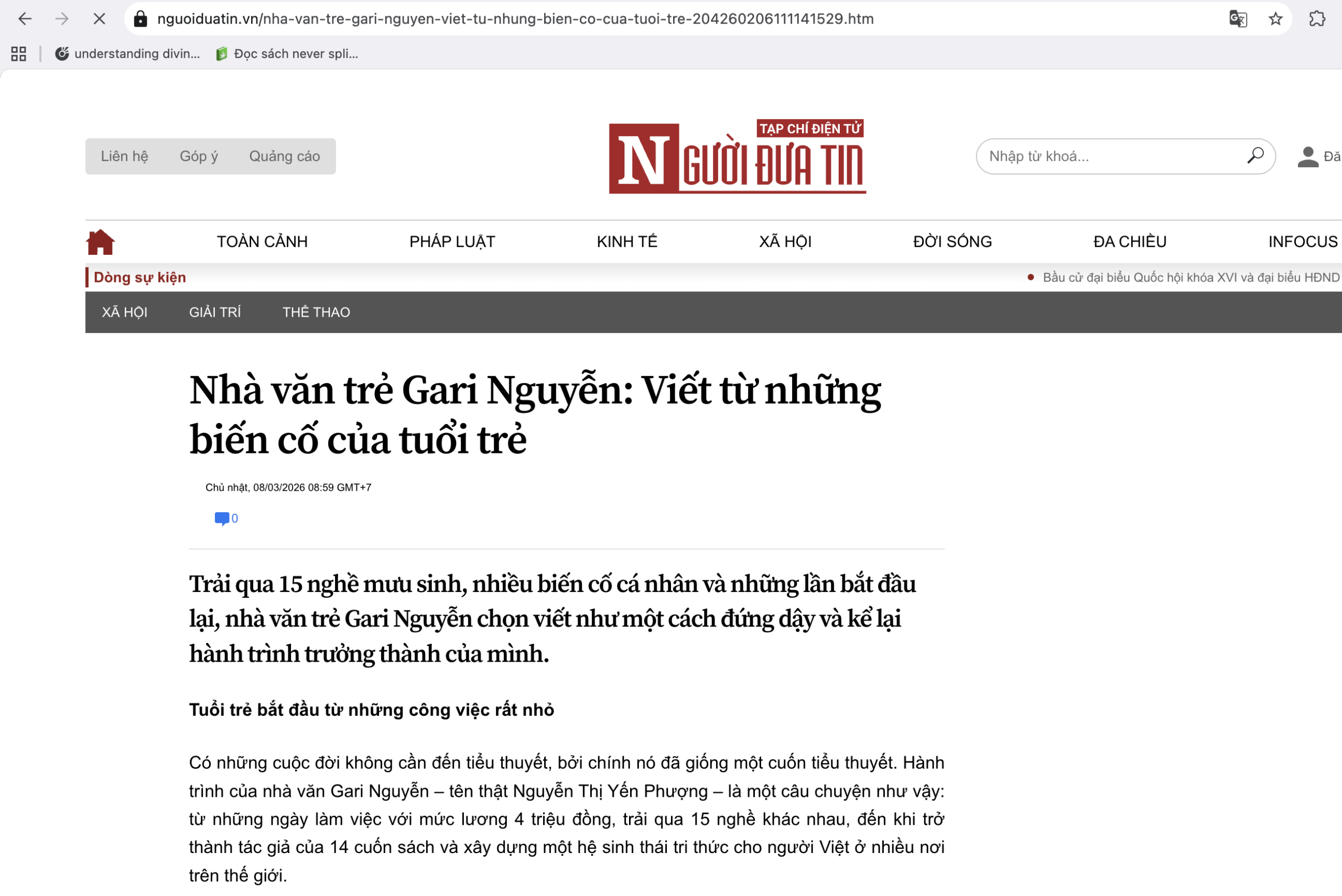 [Nguoiduatin.vn] Nhà văn trẻ Gari Nguyễn: Viết từ những biến cố của tuổi trẻ