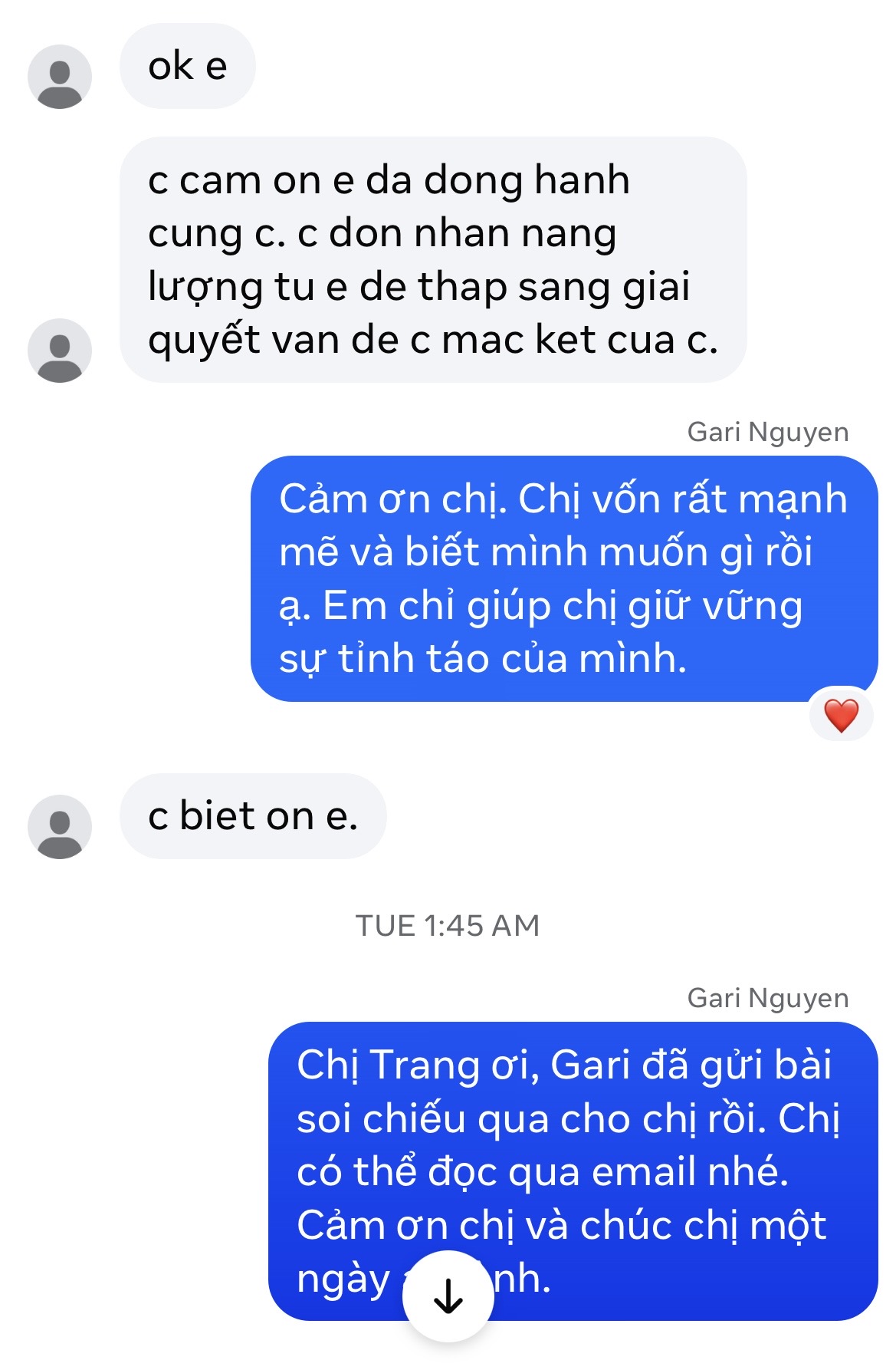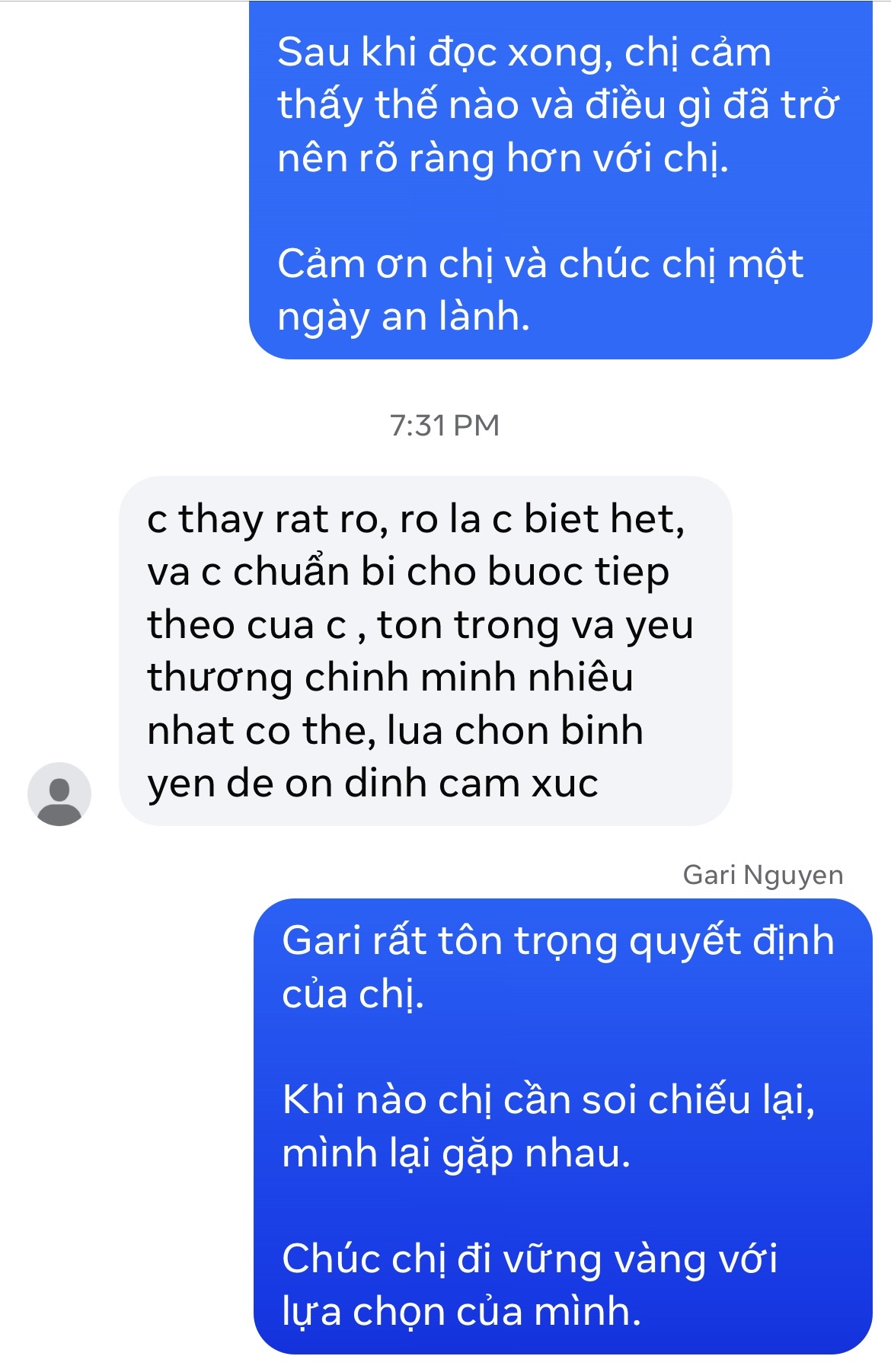 – Gari đọc và phản hồi trực tiếp